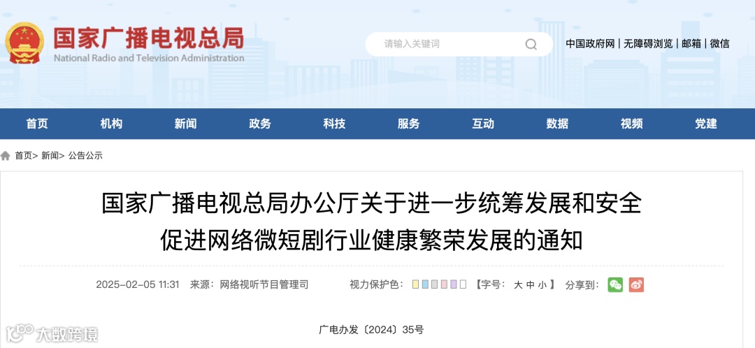 春节假期结束后的首个工作日,国家广电总局官网正式发布关于推动微短剧行业健康发展的最新通知,进一步明确行业发展方向。