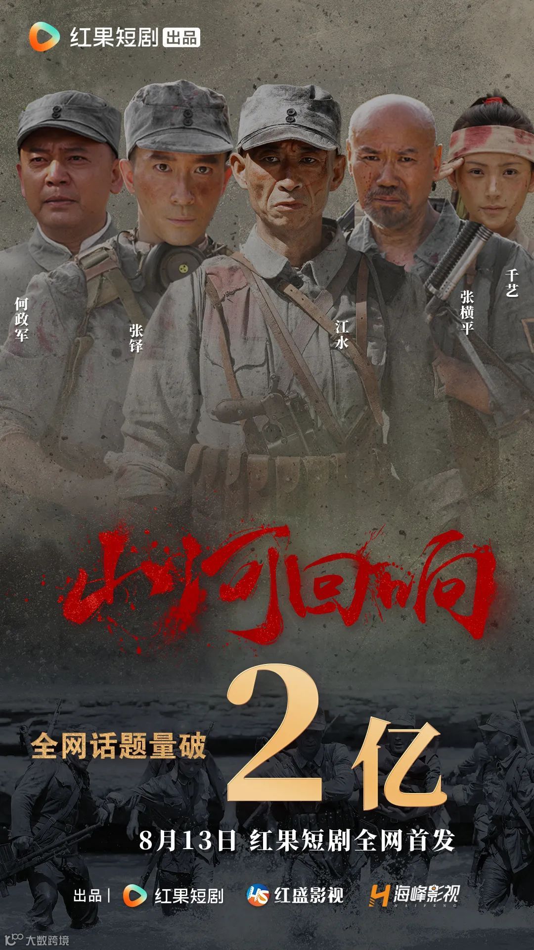 8月13日,由新华社、中共陕西省委宣传部、陕西省广播电视局指导,红果短剧、红盛影视、海峰影视联合出品的微短剧《山河回响》正式登陆新华社客户端与红果短剧平台。该剧作为纪念中国人民抗日战争暨世界反法西斯战争胜利80周年的献礼作品,由焦晓雨担任总导演,史喜彪执导,何政军、张铎、江水、来喜、杨清文、郭子煜、千艺等主演,因《亮剑》原班人马时隔20年再度集结引发广泛关注,上线初期话题讨论量突破2亿次。