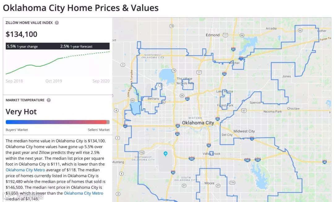 俄克拉荷马城是美国中部代表性中等城市,市区人口65万,都会区139万。当地房价极低,住房中位价仅13.41万美元,普通中产家庭约两年收入即可购房。
