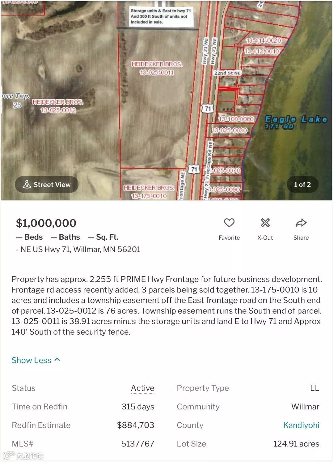 当地几乎没有百万美元级别的住宅房源。在90万美元以上,主要为土地出售。例如一块约50.55万平方米(124.91英亩)的土地挂牌价为100万美元。