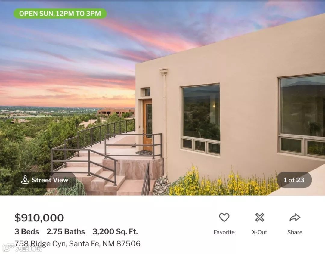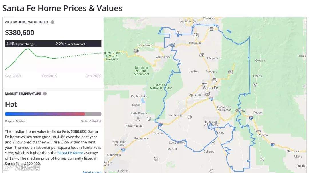 作为新墨西哥州首府,圣达菲市区人口8.4万,住房中位价38.06万美元,城市虽小但具备行政与文化吸引力。