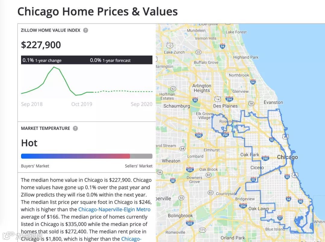 芝加哥住房中位数价格仅22.79万美元,100万美元可购入4套中位数水平房产。