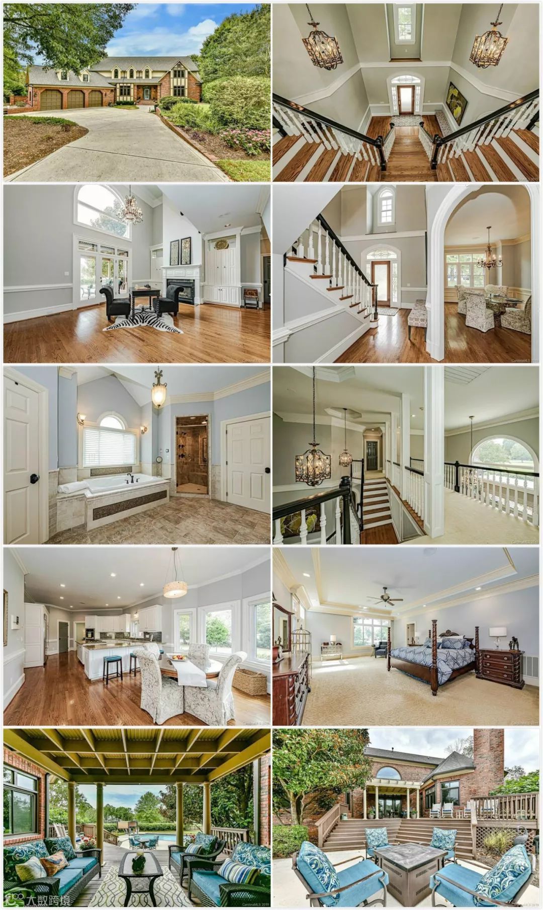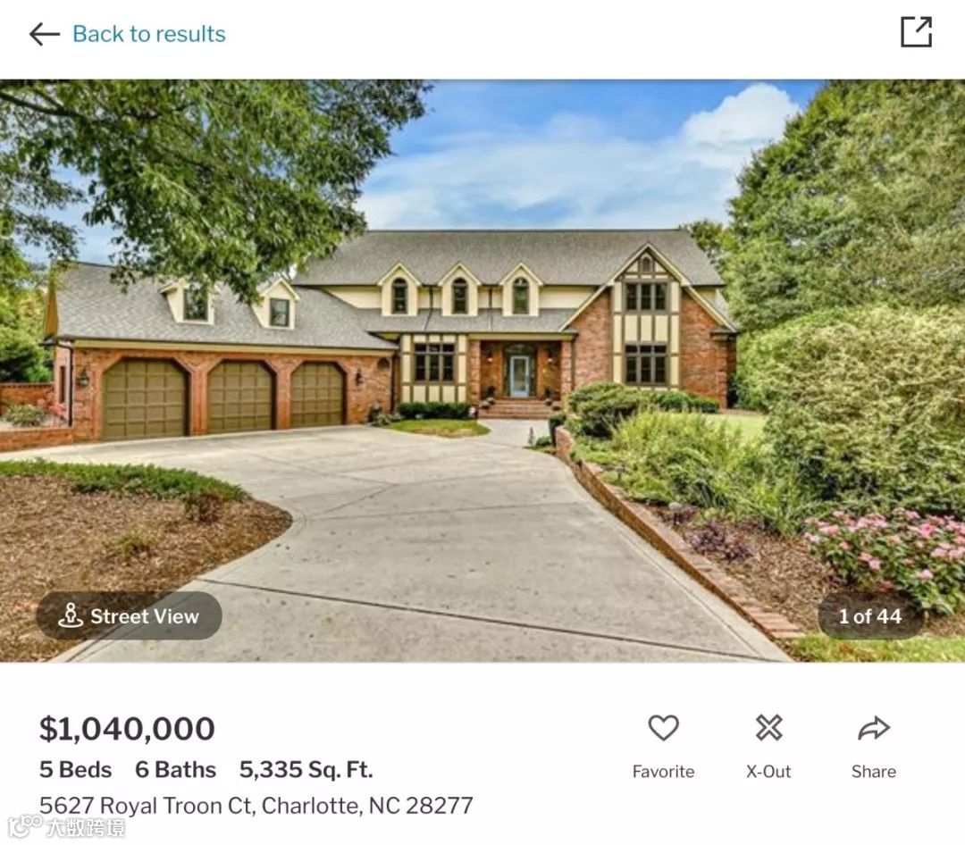 在夏洛特,100万美元可购入一套5卧室6卫、建筑面积约500平方米、占地2428平方米的独立屋,且位于小初高均为满分的公立学区,距市中心约30分钟车程。
