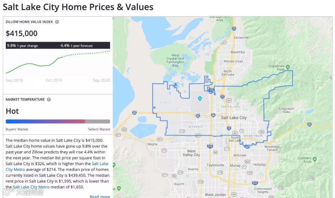 盐湖城住房中位数41.5万美元,高于芝加哥和休斯顿,主因低房产税吸引投资。