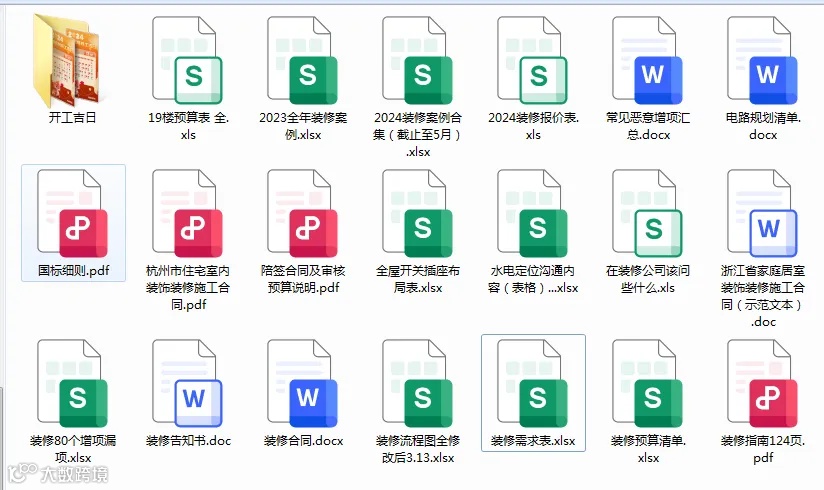④19楼装修管家,收集整理了一批装修资料,包括【2024年经典设计案例】、【装修预算表】、【装修清单】、【水电验收标准及注意事项】等等,业主扫码后可向管家领取。