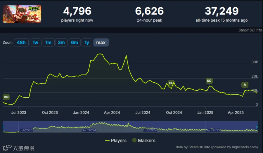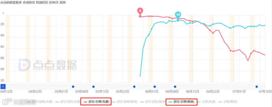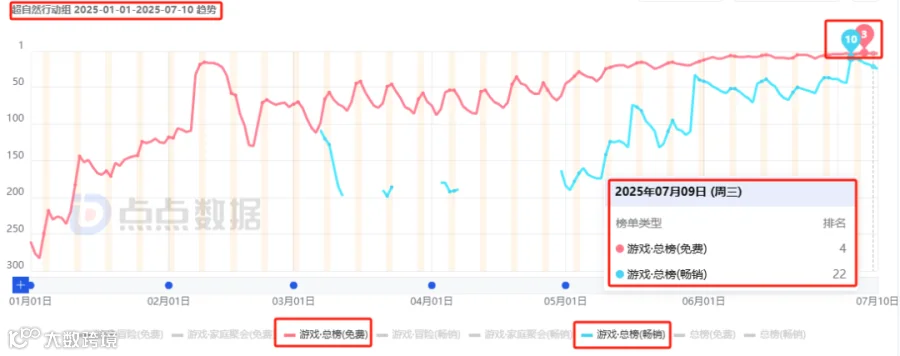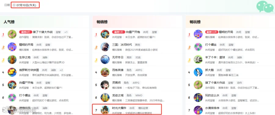 小游戏端方面,该作于4月4日上线微信平台,曾连续两月稳居畅销榜TOP5,目前位列第24名,体现跨端运营能力。
