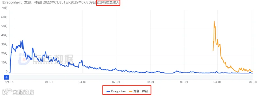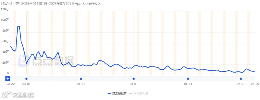 《龙息:神寂》由字节跳动转至腾讯北极光工作室运营,国内首月iOS流水6464万元,随后快速下滑,当前月流水约742万元,全球累计流水3.79亿元(海外当前月流水不足50万元)。