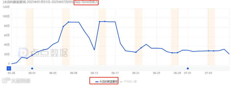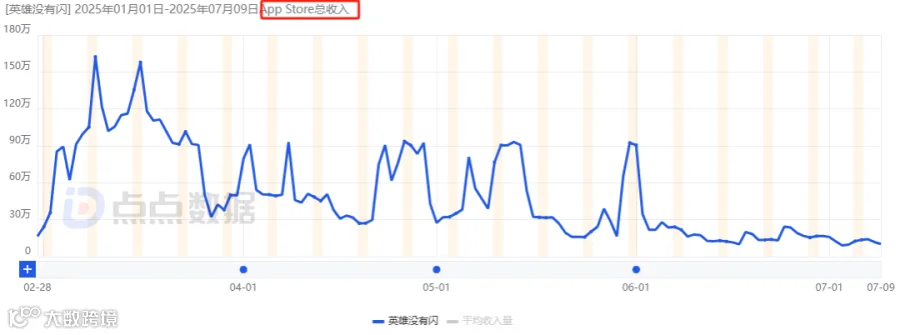 但自6月中下旬起日流水明显下滑,当前约为170万元(峰值25.6%),仍居iOS畅销榜第19名。