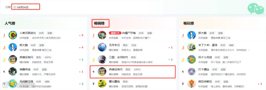 近期,三七互娱凭借新品《英雄没有闪》迅速攀升至小游戏畅销榜第2位,并有三款产品同时进入榜单Top 10,展现出强劲的市场竞争力[2]。