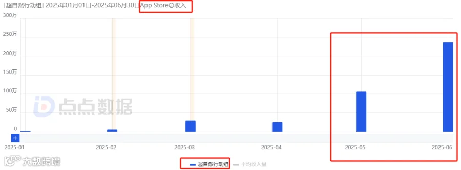 由NIGHT STUDIOS研发、巨人网络战略投资的《超自然行动组》初期表现平淡,2025年1月付费测试首月iOS流水仅45万元。但凭借“中式恐怖+合作生存”差异化定位,类似《致命公司》的玩法体验,叠加口碑传播、与“故宫里的神兽世界”联动、加大投放与版本更新,实现“低开高走”。