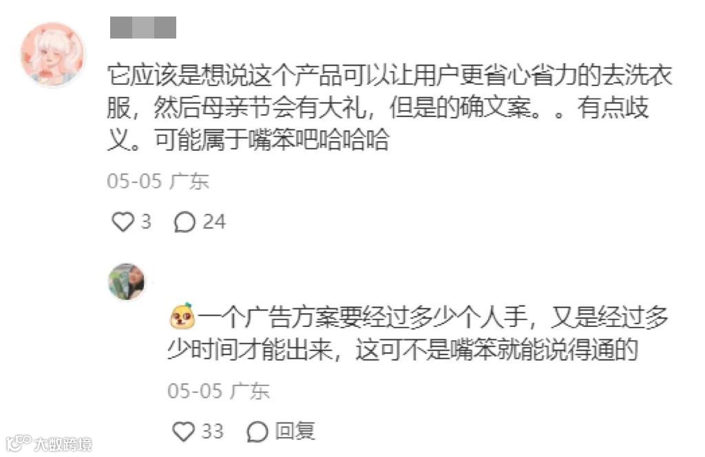 然而,这个文案在实际执行中却出现了偏差,因为它可能被解读为对妈妈的一种调侃或讽刺,仿佛在暗示妈妈总是家庭中的最后一位受益者,这与品牌方原本想要传达的关爱和尊重的价值观相悖。