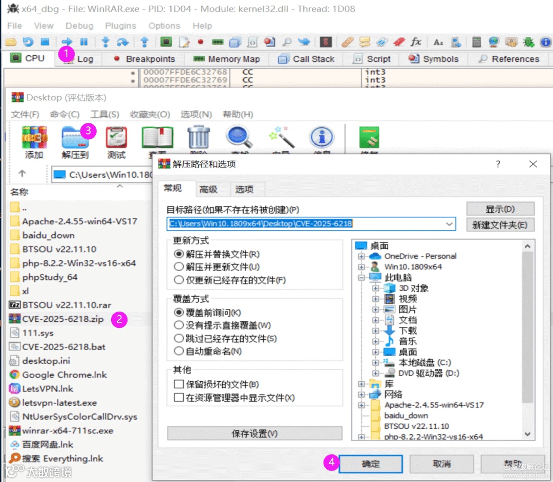 在桌面新建CVE-2025-6218.bat,内容如下: