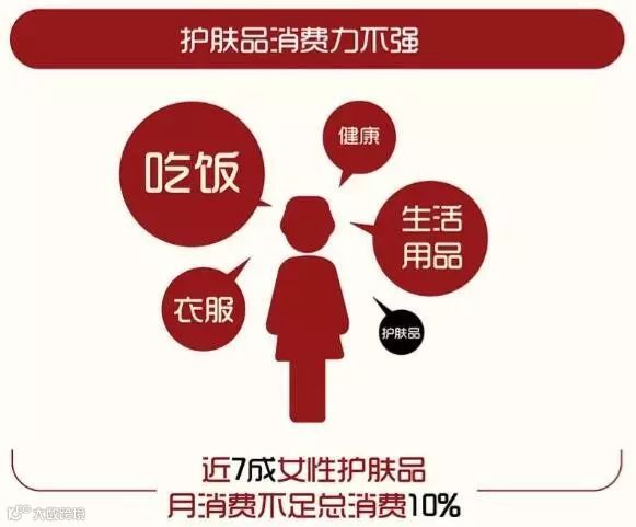 数据显示,45岁+女性的消费行为呈现出明显的“家庭优先”特征。近七成女性护肤品月消费仅占总消费的10%,其中超过三成每月护肤品支出不足百元。