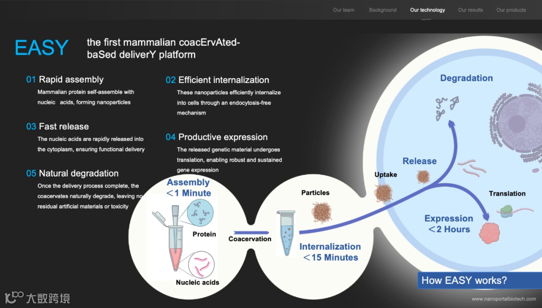 针对以上困境,西湖大学联合西湖凝聚体团队,自主研发出全球首创的 ProteanFect® 基因递送系统,构建了非病毒、非脂质体、非电转的全新递送路径。其核心创新点在于“仿生内源蛋白凝聚体”的设计思路:该系统模拟细胞内源性蛋白液液相分离特性,通过仿生机制实现核酸分子的高效包裹与递送。这种独特的递送模式,既规避了病毒载体的免疫原性风险,又摆脱了脂质体对细胞类型的适配限制,同时避免了物理手段对细胞的损伤,为基因递送搭建起了一条更安全、更通畅的 “新桥梁”。