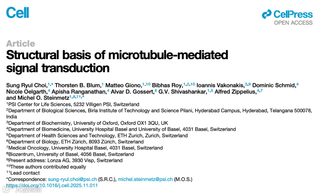 近日,瑞士保罗谢尔研究所的研究人员在国际顶尖学术期刊 Cell 上发表了题为:Structural basis of microtubule-mediated signal transduction 的研究论文。该研究揭示了微管介导的信号转导的结构基础。