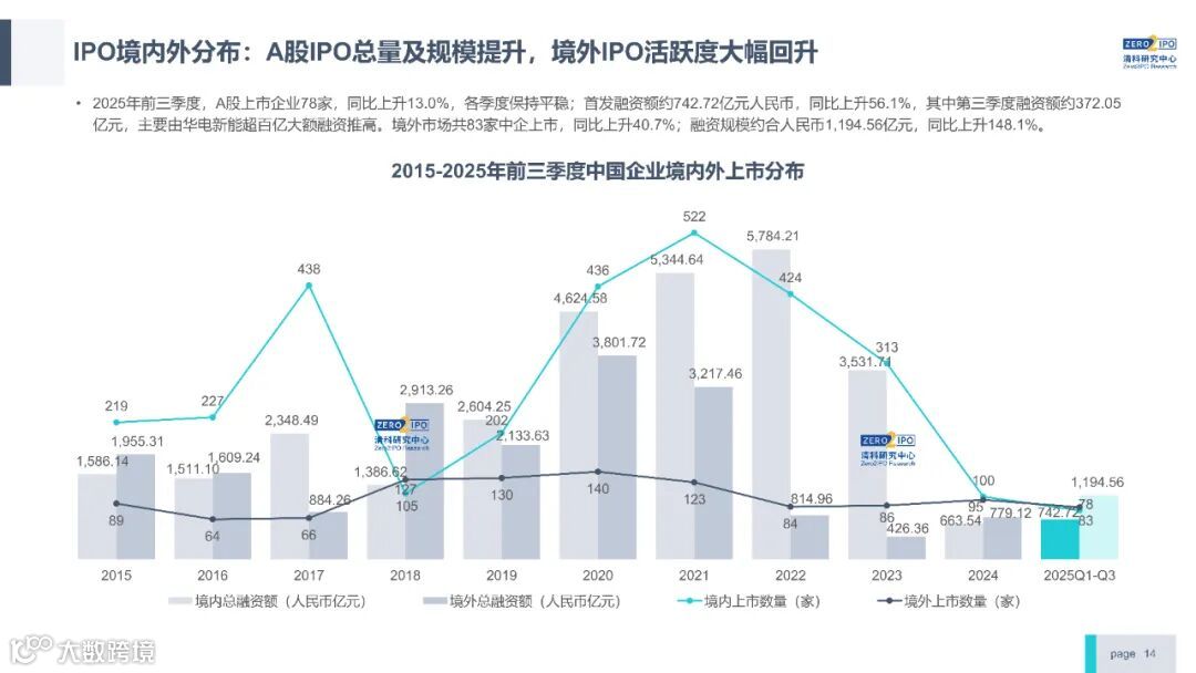 退出方面,在IPO及并购市场回暖推动下,被投企业IPO及并购退出案例数同比增加。据统计,2025年前三季度共发生2,029笔退出案例。其中被投企业IPO案例数为1,002笔,同比上升37.8%;并购退出案例数合352笔,同比上升84.3%。