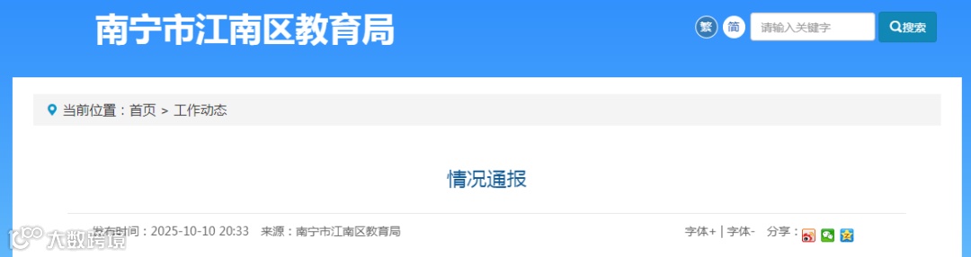 10日,南宁市江南区教育局通报“小学教师脚踢学生”。