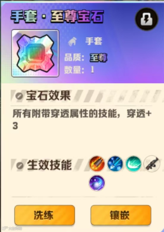4. 技能穿透强化:所有附带穿透属性的技能,穿透+3(注:黄宝石穿透+1,红宝石穿透+2)。
