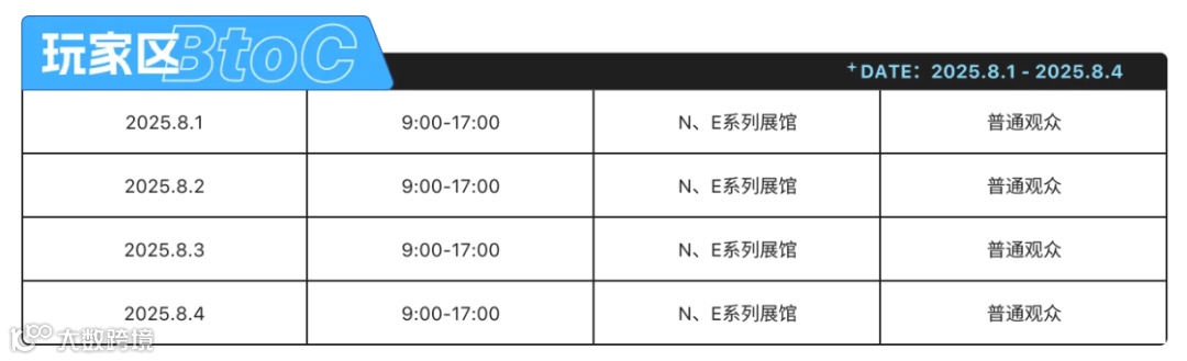 BTOC 互动娱乐区(N 馆 / E 馆)展期:8月1日- 3日9:00-17:00,8 月4日9:00-16:00。