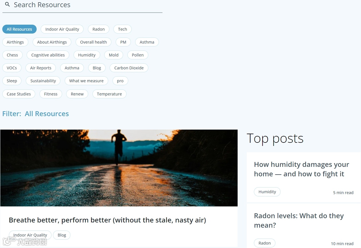 此外,Airthings不仅将博客内容精细地划分为多个主题版块,还通过关键词进行标签化,这种分区+标签系统,不仅能提升内容检索与阅读效率,也有助于搜索引擎爬取内容,从而提升SEO优化效果。