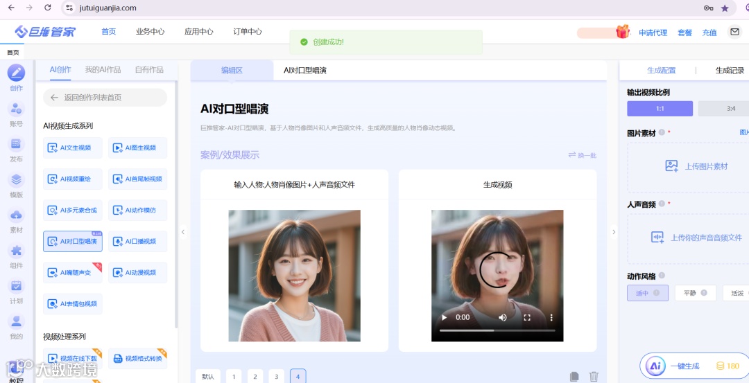 在数字化娱乐蓬勃发展的当下,对口型唱歌视频已成为社交媒体上的热门内容形式,融合音乐、表演与创意,深受网友喜爱。然而,传统制作方式往往涉及复杂的剪辑与音画同步流程,令许多用户望而却步。 随着人工智能技术的进步,这一创作门槛被显著降低。以“巨推管家”为代表的AI视频生成工具,正在让对口型视频制作变得简单高效。用户只需通过电脑浏览器访问平台,即可进入操作界面,开启创作之旅。 在平台左侧功能栏中,“创作”模块下的“视频创作”功能支持多种视频生成模式,包括“AI视频”、“快速拼剪”和“智能混剪”。用户可根据需求选择类型,并在提示词输入框中输入歌词或创意构思,系统将在短时间内自动生成匹配的对口型视频内容。 该AI系统大幅简化了制作流程,提升了创作效率,适用于音乐爱好者、短视频创作者及普通用户。其智能化处理能力实现了技术与艺术的融合,推动视频内容个性化与高效化生产。 巨推管家为用户提供了一个低门槛、高产出的创意表达平台,助力人人皆可参与短视频内容创作。