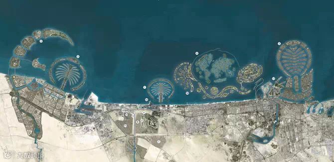 棕榈岛被誉为“世界第八大奇迹”,由三个棕榈岛和一个世界岛组成,总面积达140平方公里,耗资140亿美元,建成后将成为全球最大的人工岛屿(2009年)。
