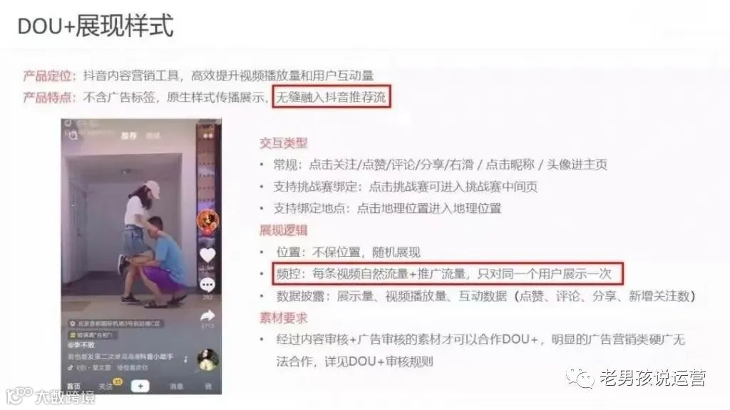 DOU+本质是购买内容流量,与信息流广告不同,其流量无广告标记,与自然流共享频控规则,可无缝融入推荐流。