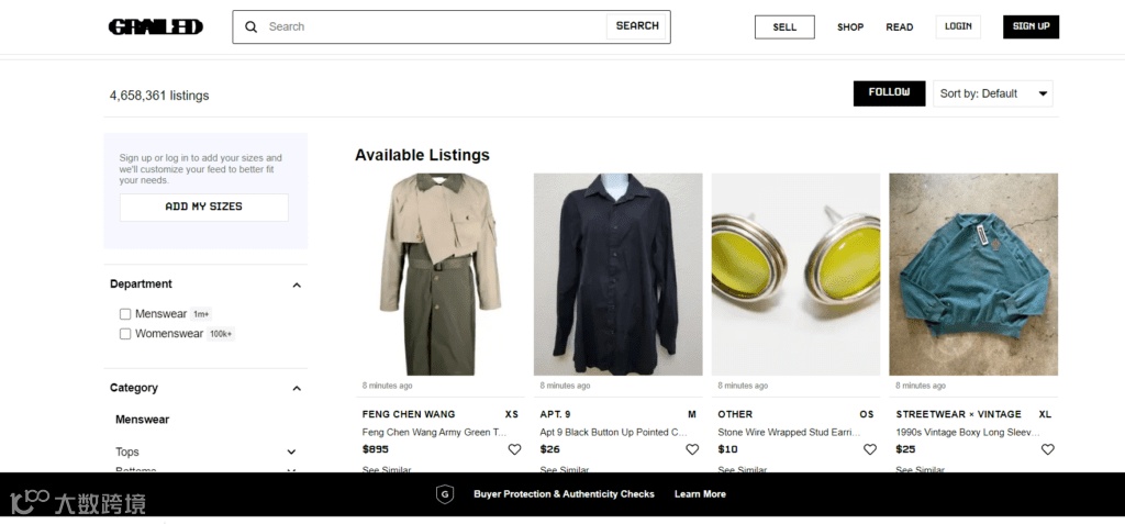 Grailed致力于打造高端男士服饰交易生态,商品涵盖限量款运动鞋、设计师夹克等稀缺品类。买家可享受低于零售价的优质二手服饰,卖家则能触达具备时尚认知的精准消费人群。