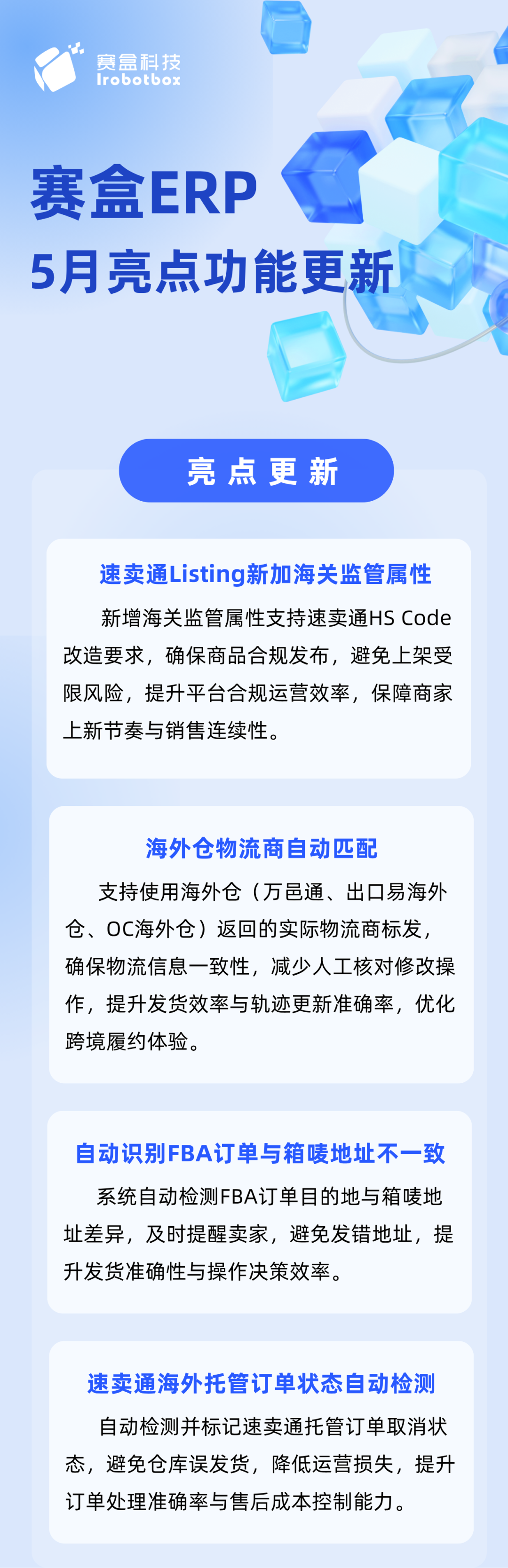 导读:月度更新 | 赛盒ERP 5月功能更新汇总