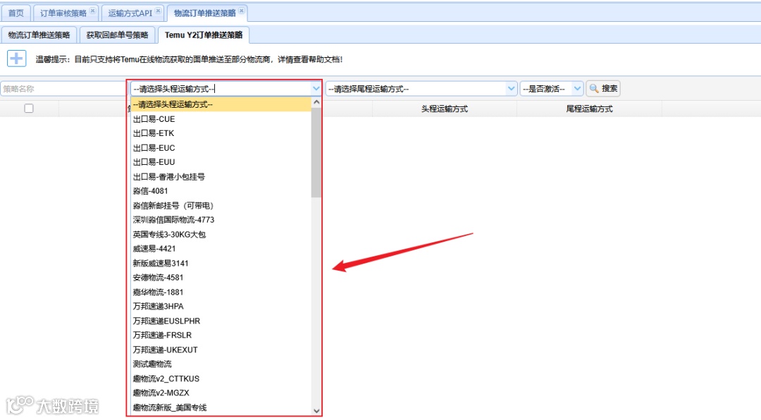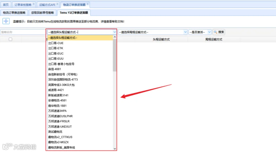 赛盒ERP已对接支持Y2模式物流商资源列表(部分)
