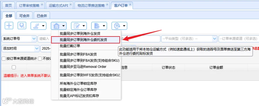 针对已在海外仓备货的卖家,部分ERP系统提供“海外仓委托发货”功能,支持Y2订单通过海外库存履约。