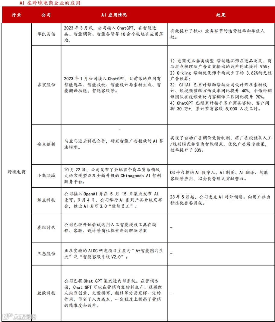 海外企业已在电商、旅游、教育等领域率先应用GPT技术,如支付工具、电商SaaS、OTA平台、AI口语教学等,提升服务智能化水平。