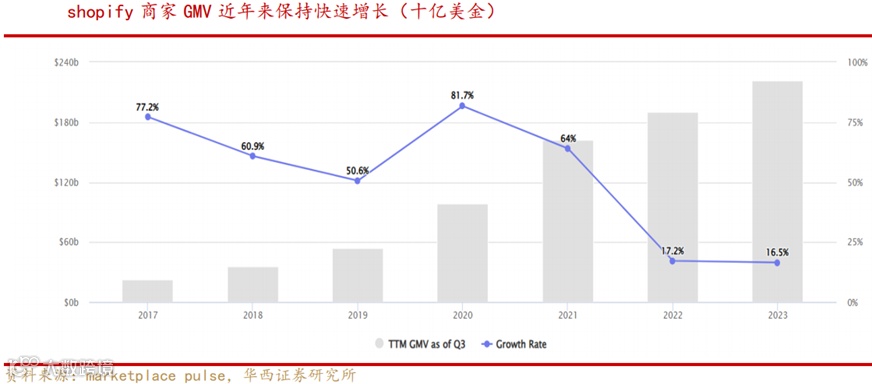 Shopify为全球电商SaaS龙头,提供全渠道解决方案及支付、物流、广告等增值服务。2022年收入中订阅服务占24%,商家解决方案占76%。其在美国电商GMV市占率约10%,货币化率仅2.85%,盈利能力受限。2023年前三季度销售与研发费用率分别为18%和29%,公司于5月裁员超2000人并出售物流业务,第三季度实现扭亏为盈。2023年8月与亚马逊合作推出Buy with Prime服务,允许Shopify商家使用Amazon Pay收款并由FBA发货,实现流量与物流互补[11]。
