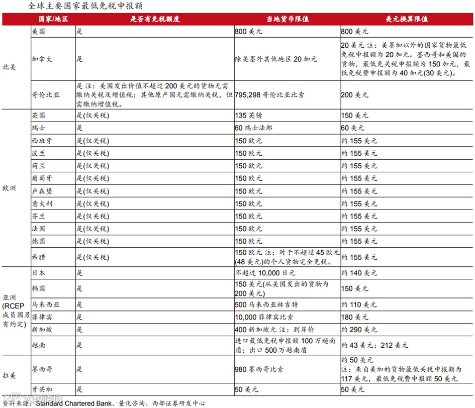 美国对800美元以下进口商品免征关税,利好中国出口企业。欧盟虽取消22欧元以下商品增值税豁免,但150欧元以下仍免关税,整体关税壁垒较低,利于开拓欧洲市场。
