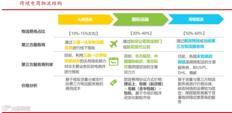 跨境电商物流成本占总成本20%-30%,其中尾程配送占比50%-60%,是最大支出项。FBA为亚马逊卖家主要选择,2018-2022年费用持续上涨,2023年部分品类微降,2024年进一步下调:标准尺寸平均降价0.20美元/件(降幅3%-6%),非标尺寸降0.61美元/件(约6%),低价商品继续享受0.77美元/件配送补贴。