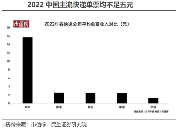 以圆通为例,2022年单票成本中末端派送占比57%(1.33元),中转与运输合计不足一半。高密度人口与巨量包裹(2023年超1200亿件)支撑规模经济,第三方物流足以满足平台需求。