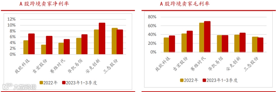 2023年上半年,华凯易佰、致欧科技、吉宏股份、赛维时代、安克创新归母净利润同比分别增长108%、67%、61%、42%、46%,受益于成本优化,利润增速普遍高于收入增速。