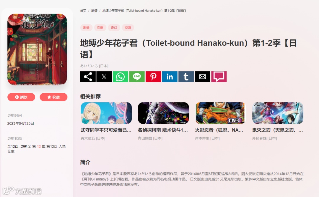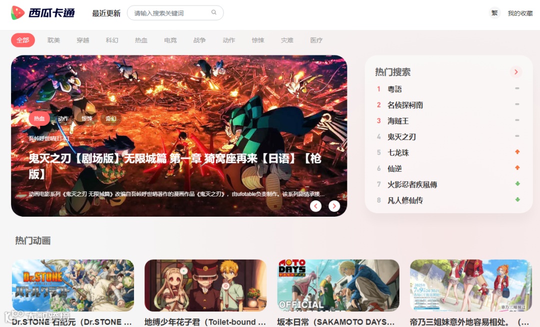 西瓜卡通是一个提供全网动漫资源在线观看的网站,更新速度较快且资源丰富,覆盖日番、国番、美番(网飞动漫)、韩番等内容,并且支持4-K画质的清晰度选择,可以满足追番的各种需求。