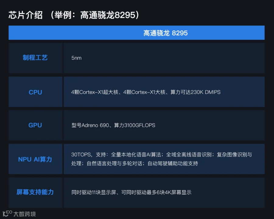 本文以骁龙8295为例,分享了芯片性能指标的设计与场景需求的深度耦合。对技术开发者而言,指标是功能实现的底层保障;对设计师而言,指标则是交互创意的可行性标尺。