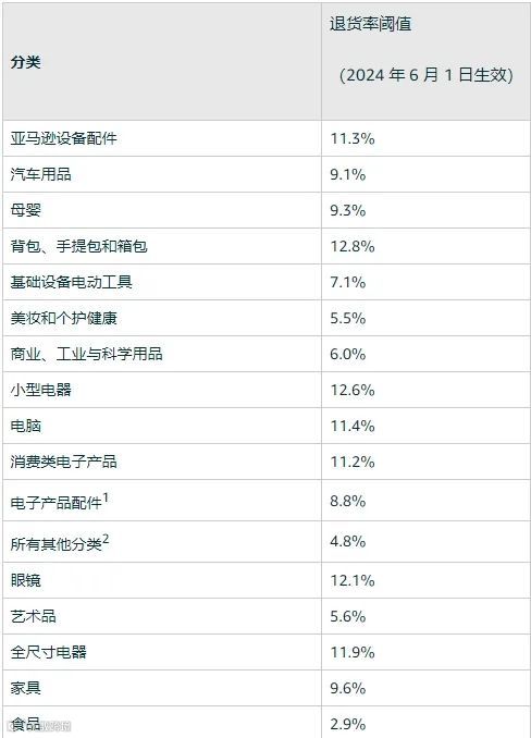 除服装和鞋靴外,各类商品的退货率阙值,参考下图:
