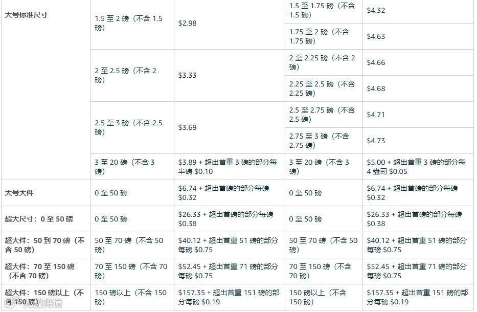 服装和鞋靴类目一向是高退货率商品品类,因此这一品类不设置退货率阙值,直接收取相应退货处理费。每件商品收取的费用基于商品的尺寸分段和配送重量计算,总的来看超过阙值的商品尺寸越大、发货重量越重,征收的退货处理费就越高。具体费率如下所示: