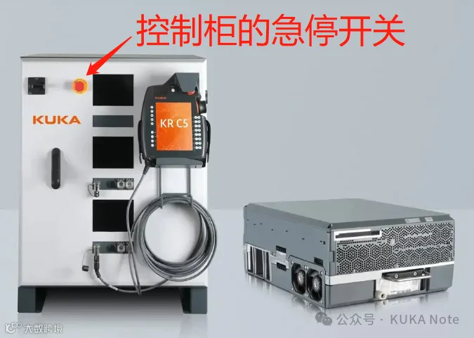 功能一:用于连接附加紧急停止的安全输入(如下图控制柜内所有KRC5控制器的急停开关)。