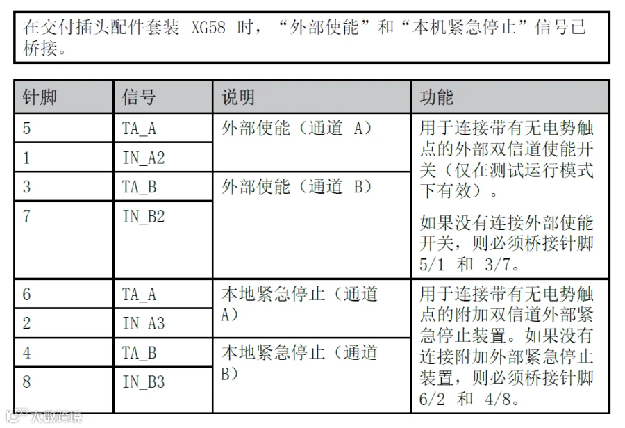 XG58:安全接口(2个用于外部使能装置和附加紧急停止的安全输入端)