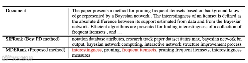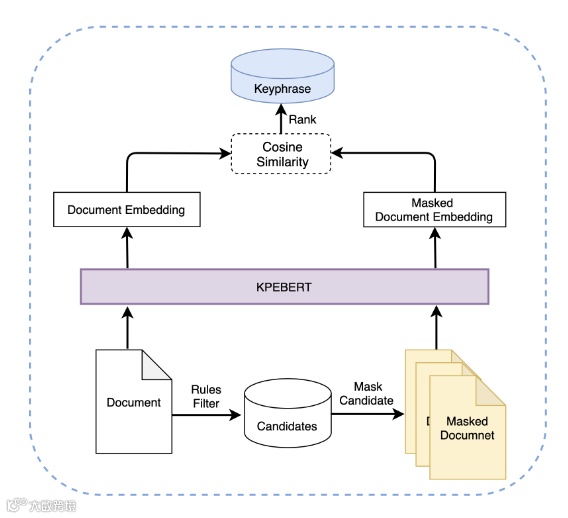 针对传统关键词抽取方法(Phrase-Document, PD)在长文档中因语义不匹配导致性能下降的问题,达摩院提出无监督关键词抽取新方法 MDERank。该方法基于“关键短语移除将显著改变文档语义”的假设,通过比较原始文档与掩码文档嵌入的相似性进行候选短语排序,有效缓解 PD 方法对长候选的偏好及上下文缺失问题。进一步提出的 KPEBERT 模型经自监督对比学习优化,更契合 MDERank 需求,在六个基准测试中平均 F1@15 指标超越 SIFRank 3.53 个百分点。