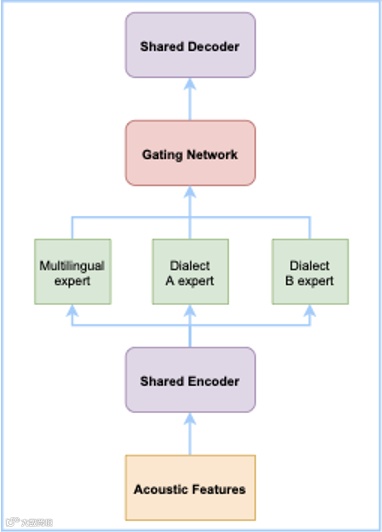 通用中文识别在普通话上接近人类水平,但面对方言时性能骤降。传统做法为每种方言单独建模,导致模型繁多、数据稀疏问题突出。达摩院沿用专家系统思路,为每种方言设置专家网络,并增设共享专家网络以捕捉方言共性。