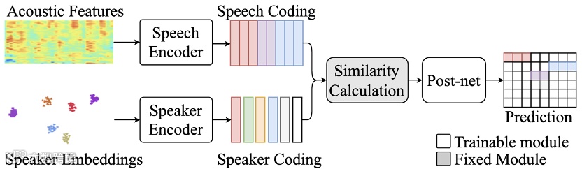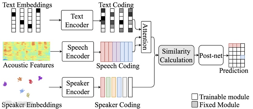 创新采用幂集编码(Power Set Encoding),将重叠语音识别由多标签预测转为单标签分类,避免阈值选择难题,显著提升重叠语音识别率。进一步引入ASR生成的文本语义信息,通过注意力机制融合声学与文本特征,实现“谁在什么时候说了什么”的精准定位。