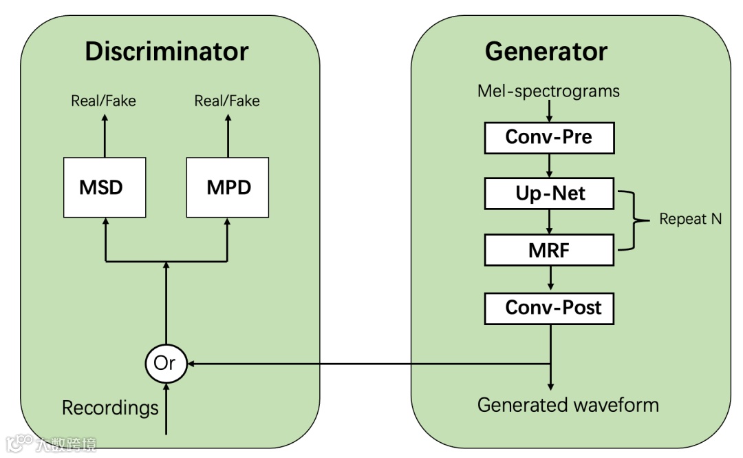 为支持48k采样率,优化判别器、上采样网络与多接收域融合(MRF)结构,确保高采样率下的稳定合成效果。