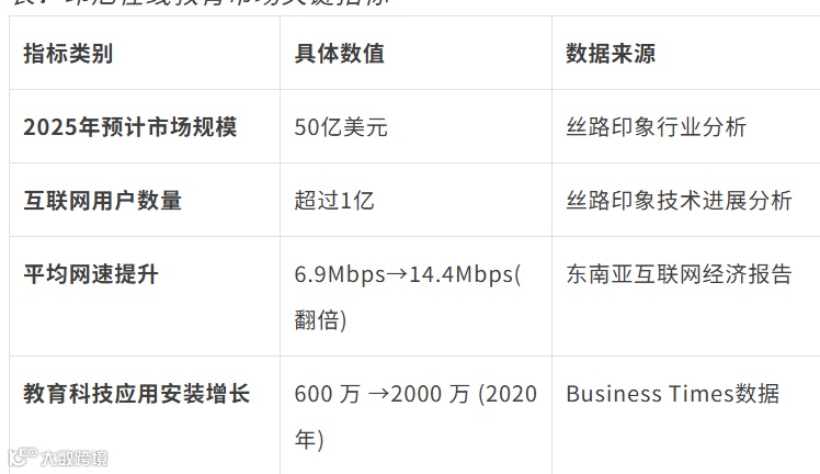 表:印尼在线教育市场关键指标
