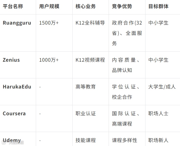 表:印尼主要在线教育平台竞争力对比