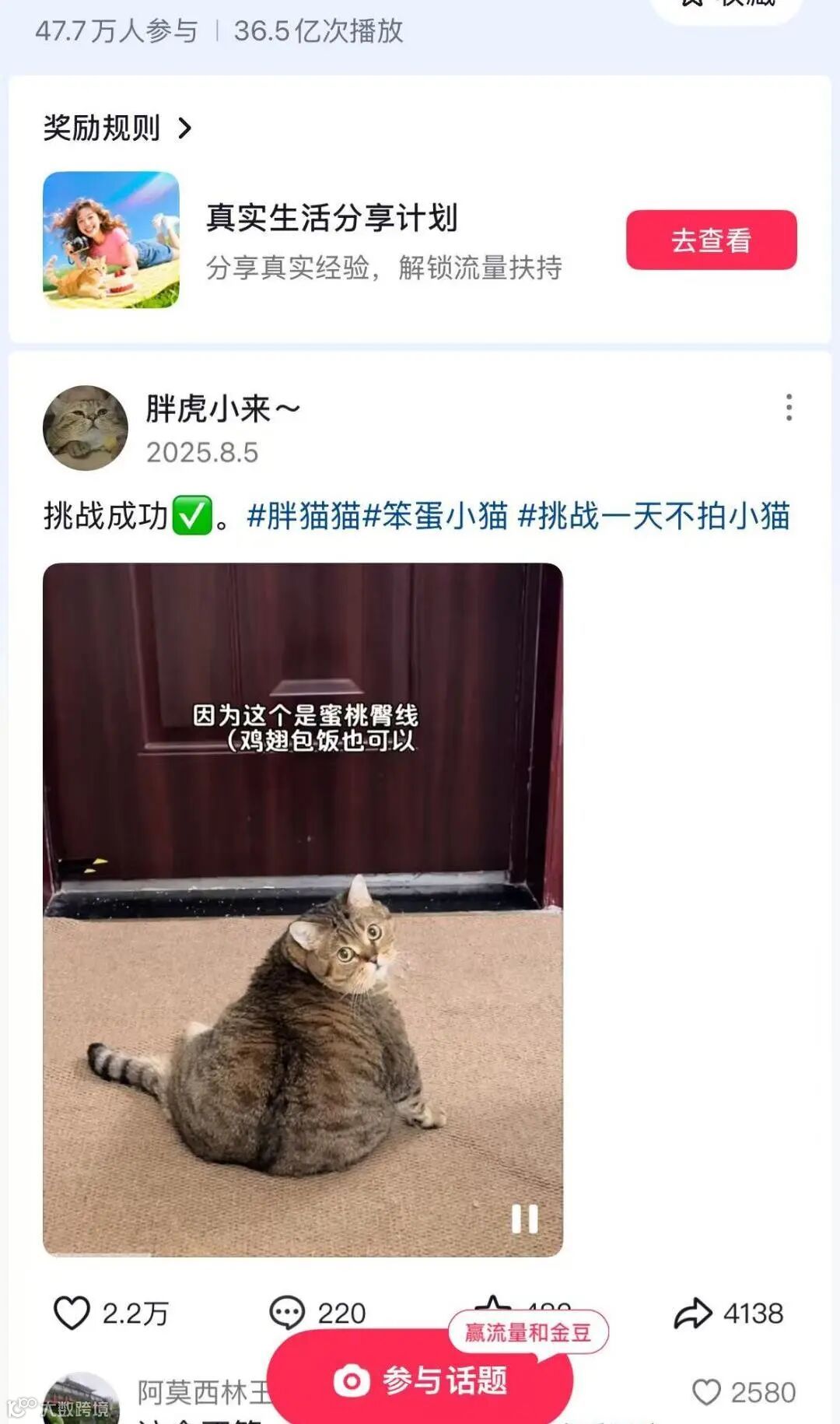 在抖音,#大肥猫# #大肥喵# #胖猫猫# #一辆猫#等话题,累计播放超74亿次,反映出“圆润体型+蓬松毛发”已经成为当下猫咪的审美风向,宠物“萌”势力进一步增强。